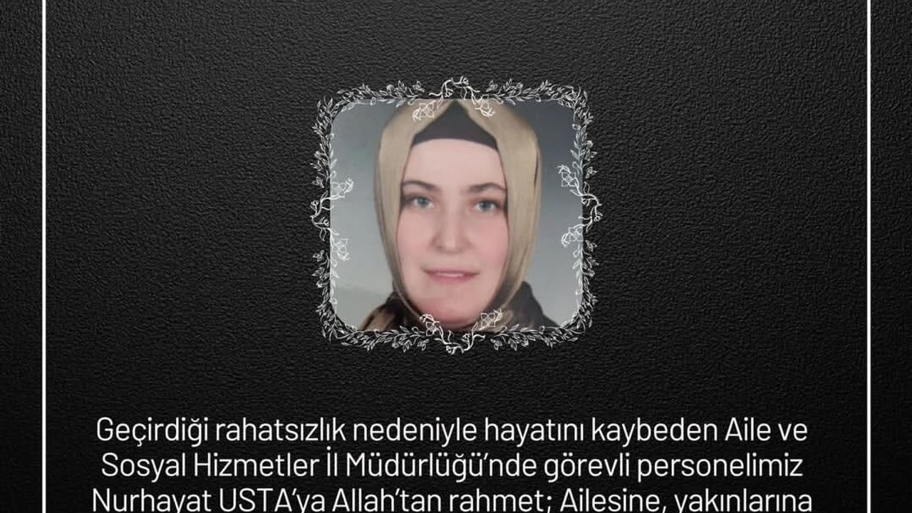 Taziye mesajı yayımlayan Vali Önder Bakan, 'Geçirdiği rahatsızlık nedeniyle hayatını kaybeden Aile ve Sosyal Hizmetler Müdürlüğü'nde görevli personelimiz Nurhayat Usta'ya Allah'tan rahmet, ailesine, yakınlarına ve çalışma arkadaşlarına başsağlığı diliyorum' ifadelerini kullandı. (DHA)