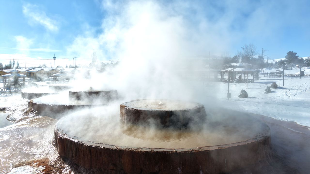 Hava sıcaklıklarının sıfırın altında seyretmesiyle travertenlere su ulaştırmak amacı ile uzatılan borulardan gelen 45 derecelik sıcak suyun anlık olarak donma seviyesine indiği görüldü. Termal suyun verildiği noktanın etrafında oluşan buz kütleleri dikkat çekti. Sıcak su ve buzun yan yana bir arada bulunduğu bölge, güzel görüntüler oluşturdu. Altınkale, karlar içinden yükselen sıcak su buharı ile seyirlik görüntüler sunuyor. Altınkale'deki eşsiz kış manzarası havadan da görüntülendi. (DHA)