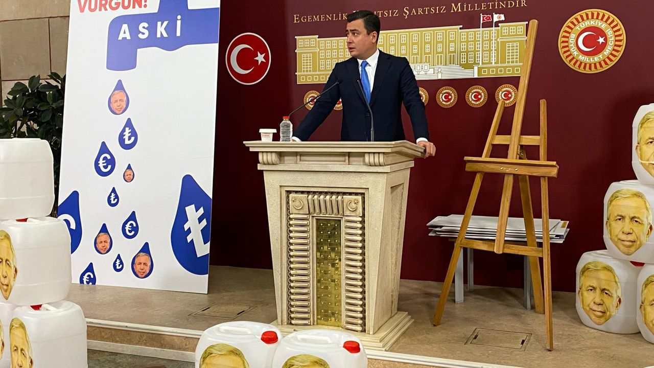 AK Parti Ankara Milletvekili Osman Gökçek, TBMM'de yanında getirdiği su bidonlarıyla basın toplantısı düzenledi. Gökçek, Ankara Büyükşehir Belediye Başkanı Mansur Yavaş'ı eleştirerek, "Ankara'da 6,5 yıldır bir damla yeni ek su kaynağı üretememiş, kaynaklarını; konserlerde, tabutlarda, karton bardaklarda maalesef heba etmiştir. Bugün Ankaralılar çamaşırlarını, bulaşıklarını yıkama noktasında ciddi sıkıntılar yaşıyor ve maalesef burada gördüğünüz su bidonlarına mahkum edilmiştir" dedi.