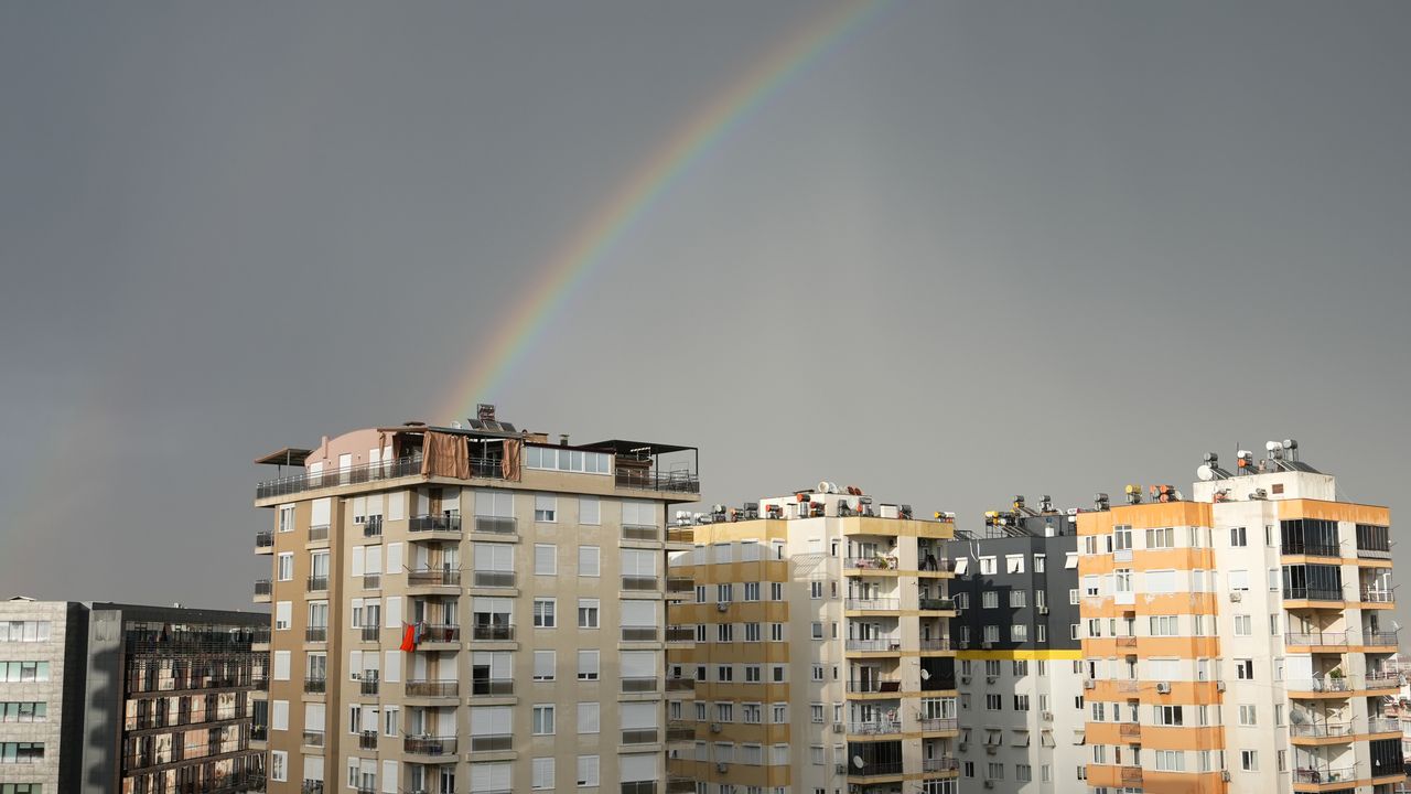 Kentte dolu yağışının ardından gökkuşağı oluştu. (DHA)