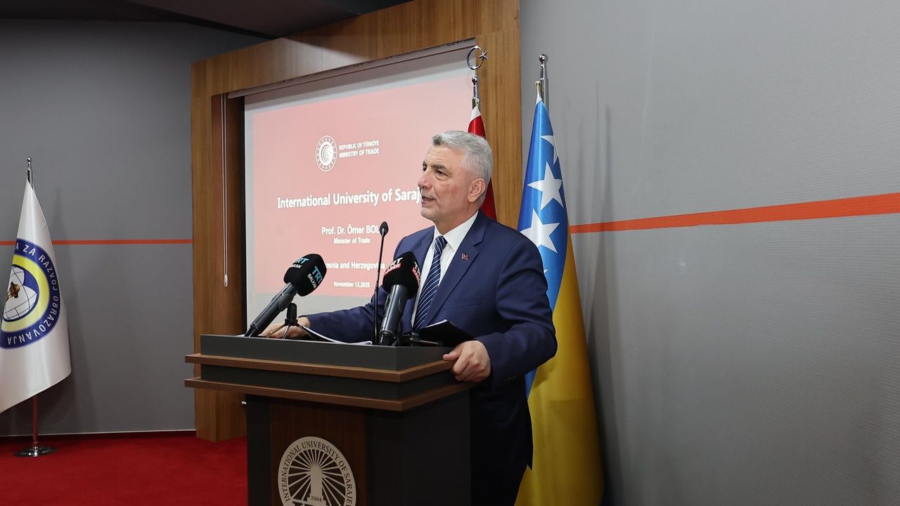Ticaret Bakanı Ömer Bolat, sosyal medya hesabından yaptığı paylaşımda, “Saraybosna’daki Uluslararası Bosna Üniversitesi’nde düzenlenen 'Küresel Ekonomik Gelişmeler ve Türkiye–Bosna Hersek Ticari İlişkileri' konulu açık derste gençlerle bir araya geldik. Öğrencilerimizle, küresel ekonomide yaşanan güncel gelişmeleri, Türkiye’nin güçlü dış ticaret performansını ve Türkiye–Bosna Hersek arasındaki ticari ilişkilerin ulaştığı seviyeyi değerlendirdik. İki ülke arasındaki ekonomik iş birliğinin, bölgesel istikrar ve kalkınma açısından taşıdığı stratejik önemi vurguladık. Gençlerimizin, küresel ticaretin geleceğine ilişkin soruları ve gösterdikleri ilgi, bizleri memnun etti. Türkiye olarak, bilgi paylaşımını, akademi–kamu–özel sektör iş birliğini ve bölgesel ekonomik bütünleşmeyi desteklemeye devam edeceğiz. Bu nazik davetleri için Uluslararası Bosna Üniversitesi’ne ve kıymetli öğrencilerimize teşekkür ediyorum” ifadelerini kullandı.