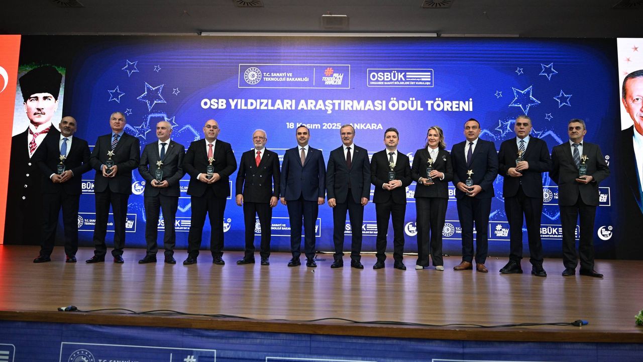 Sanayi ve Teknoloji Bakanı Mehmet Fatih Kacır, KOSGEB Başkanlığı'nda Organize Sanayi Bölgeleri Üst Kuruluşu (OSBÜK) tarafından bu yıl 5'incisi düzenlenen OSB Yıldızları Araştırması Ödül Töreni'ne katıldı. Törende, OSBÜK Başkanı Memiş Kütükcü, AK Parti Genel Başkan Vekili Mustafa Elitaş, ödül alacak firma temsilcileri, sanayiciler ve OSB başkanları yer aldı. Ödül töreninde 12 farklı kategorideki 62 firma ile 10 organize sanayi bölgesine toplam 120 plaket takdim edildi. Bakan Kacır, "Bölgesel çatışmaların, salgınların, enerji ve tedarik zinciri krizlerinin tüm dünyada dengeleri altüst edip, küresel düzeni yeniden şekillendirdiği kritik bir dönemden geçiyoruz. Bu süreçte liberal uluslararası ticaret politikaları adım adım terk edilirken, yerini ticarette korumacılık, dostlardan ve müttefiklerden tedarik alıyor. Teknoloji geliştirme ve üretmede uzun yıllar süren rekabet artık teknoloji savaşı olarak nitelendirilebilecek sert bir zeminde devam ediyor. Eski kabuller, hızla geçerliliğini yitiriyor. Dünün güneşi ile bugünün çamaşırı kurumaz. Bu anlayışla artık her ülke yeni döneme uyum sağlama çabasında" dedi.