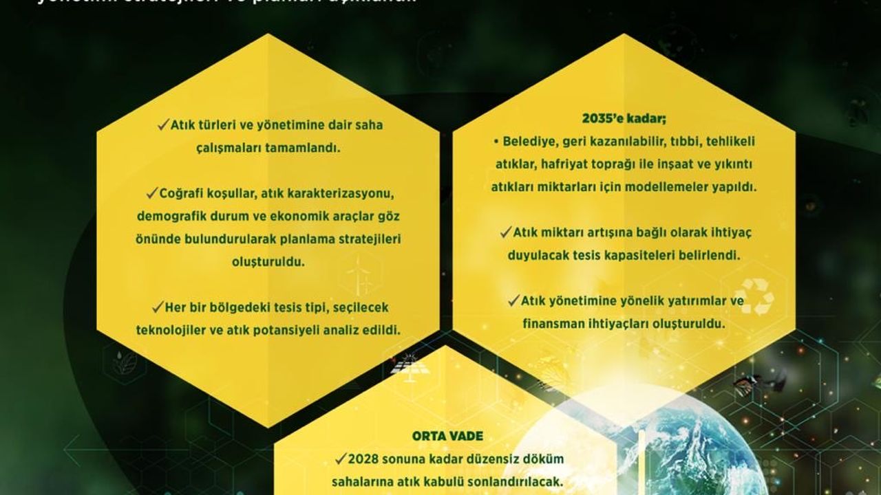 Bakanlıktan yapılan açıklamaya göre; Türkiye'nin atık yönetimi strateji ve politikalarını geliştirmek amacıyla hazırlanan plan, sınırlı miktardaki kaynakların verimli kullanılması, atık üretiminin azaltılması, oluşan atıkların yeniden kullanımı, geri dönüşüm ve geri kazanım süreçlerine dahil edilmesi ile geri kazanımı mümkün olmayan atıkların uygun yöntemlerle bertaraf edilmesine yönelik prensipleri içeriyor. Plan, Türkiye'nin atık yönetiminde uluslararası standartlarla uyumlu, sürdürülebilir ve güçlü bir gelecek inşa etmenin temelini oluşturuyor.