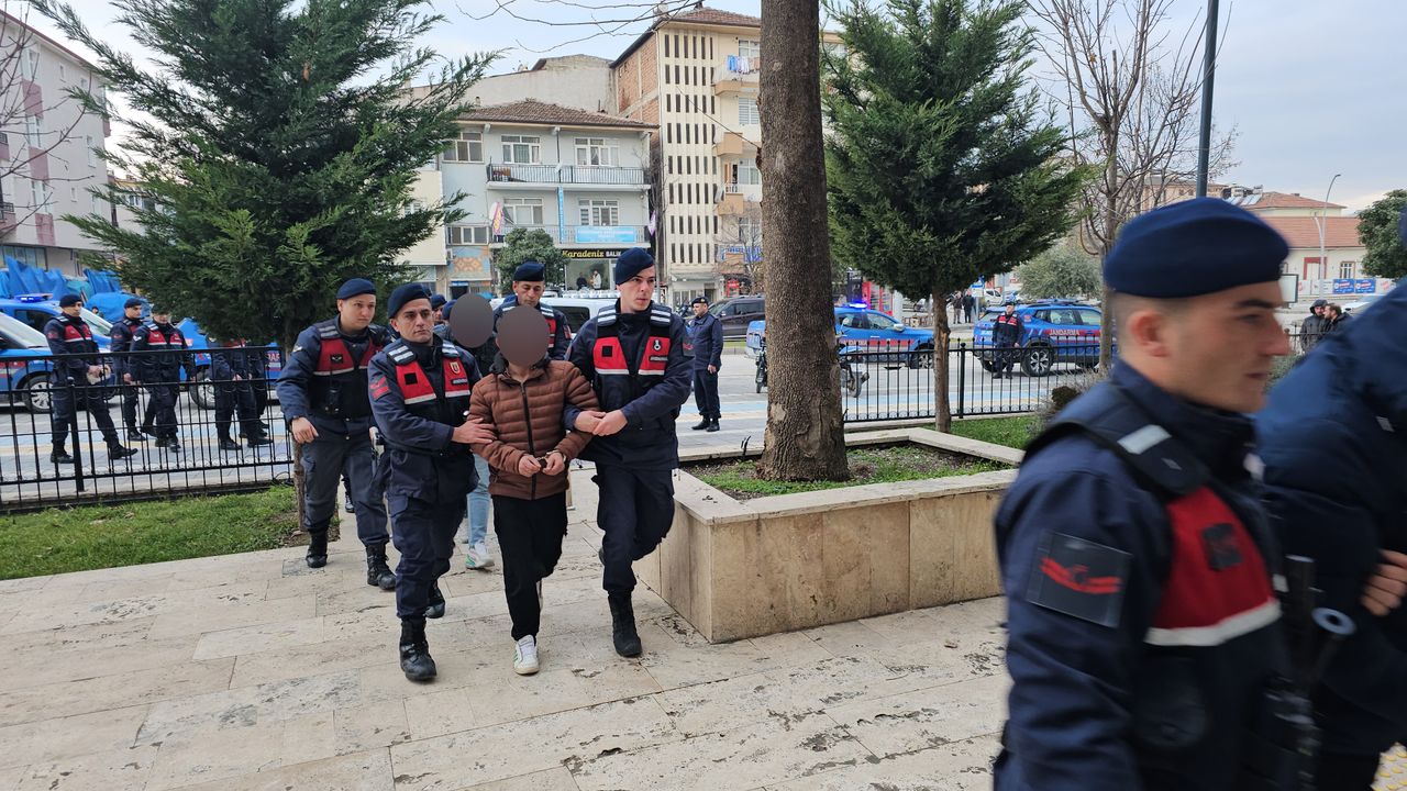 Operasyon kapsamında Erbaa'da yakalanan Erdoğan S., Koray E., Cihan E., Hüseyin K., Rahim Can Y., Furkan B., Halil O., Mehmet Can Ç., Uğur D., Davut Y., Kerim D., Özlem T., Yusuf Ö. ve Taner A. ile İstanbul'da yakalanan Barış E., jandarmadaki 4 günlük gözaltı sürelerinin ardından yoğun güvenlik önlemleri altında Erbaa Adliyesi'ne sevk edildi. (DHA)