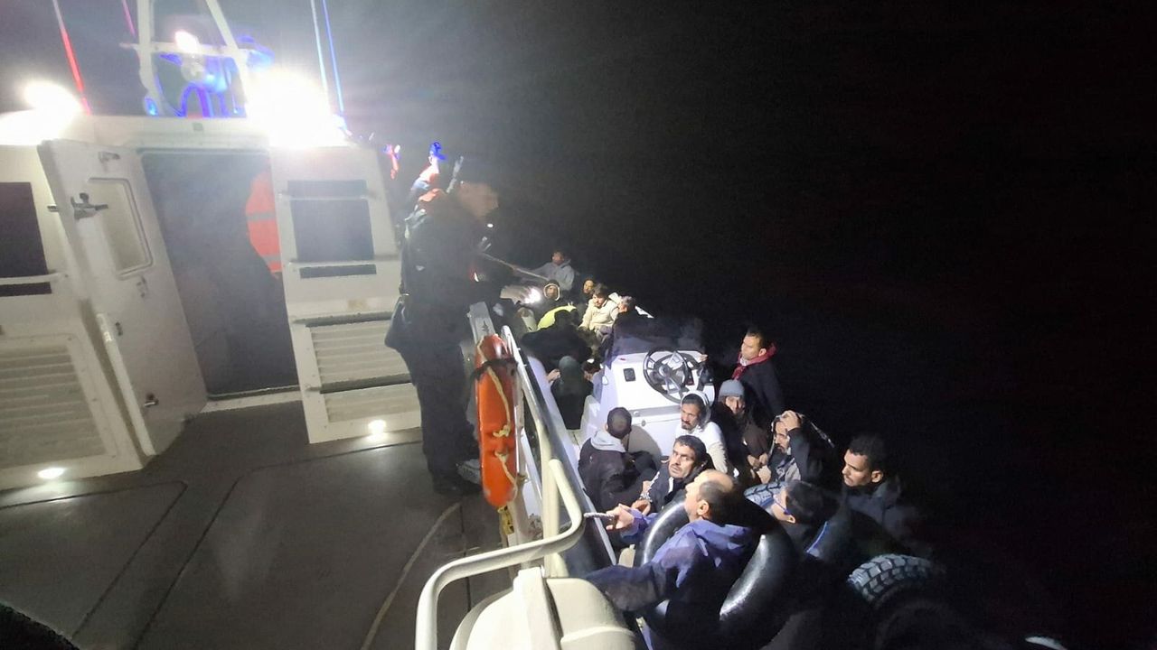 Fırat AKAY/BODRUM(Muğla), (DHA) - MUĞLA’nın Bodrum ilçesinde, motor arızası nedeniyle denizde sürüklenen lastik bottaki 5'i çocuk 26 kaçak göçmen, Sahil Güvenlik Komutanlığı tarafından kurtarıldı.
