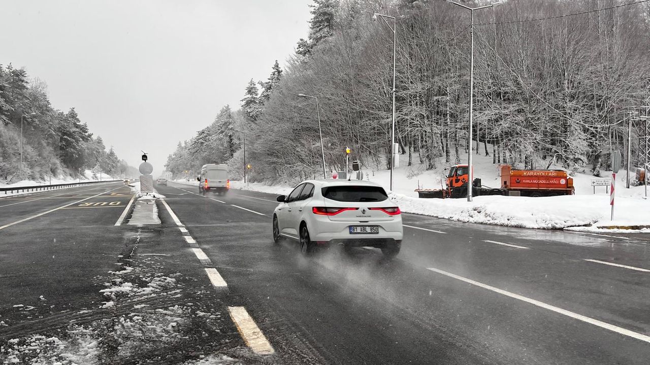 Bolu Dağı'nın D-100 kara yolu geçişinde gece kar yağışı aralıklarla etkili olurken, sabah saatlerinde durdu. Bolu Dağı'nın Karanlıkdere ve Seymenler mevkilerinde etkili olan sis nedeniyle görüş mesafesi, yaklaşık 30 metreye düştü. Karayolları ekipleri, bölgede etkili olan soğuk hava nedeniyle yol güzergahları üzerinde tuzlama çalışması yaptı. (DHA)