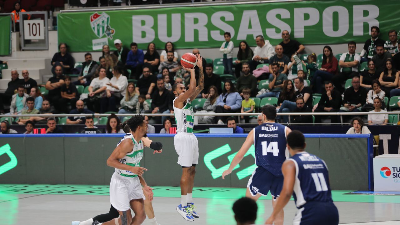 Türkiye Basketbol Süper Ligi’nin 6’ncı haftasında Bursaspor Basketbol, sahasında konuk ettiği Bahçeşehir Koleji’ne 75-77 mağlup oldu. (DHA)