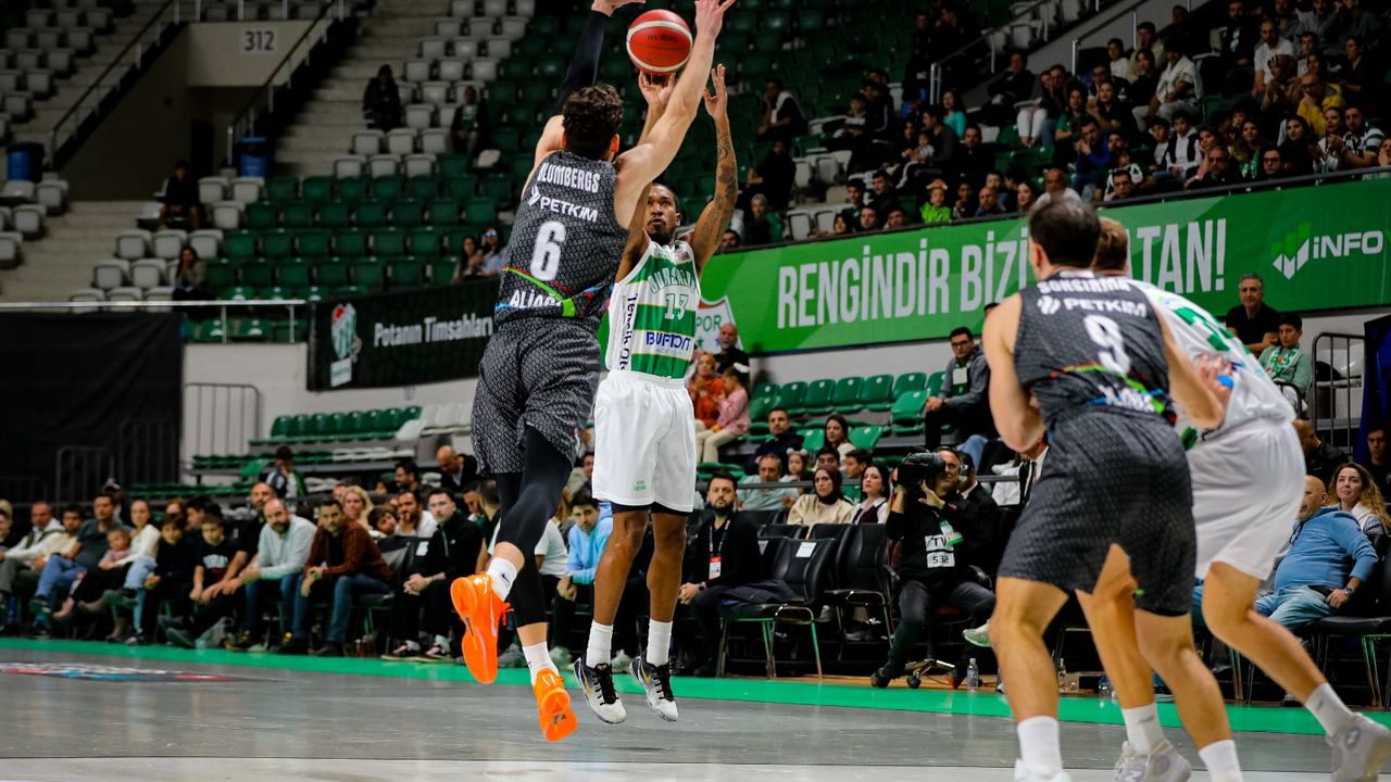 Basketbol Süper Ligi'nin 8'inci haftasında Bursaspor Basketbol, kendi sahasında Aliağa Petkimspor'u 76-74 mağlup etti. (DHA)