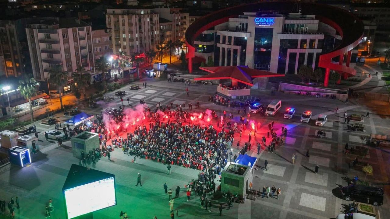 Canik Belediyesi'nin ilçede gerçekleştirdiği Türkiye-Kosova milli maç etkinliği 7'den 70'e her yaştan vatandaşın durak noktası oldu. 2026 FIFA Dünya Kupası Avrupa Elemeleri Play-Off finalinde Kosova'yı 1-0 mağlup ederek 24 yıl sonra dünya kupasına katılma hakkı kazanan ay-yıldızlı ekibin karşılaşmasını dev ekranla vatandaşlarla buluşturan Canik Belediyesi, adeta tribün ruhunu meydana taşıdı. Milli maç coşkusunun paylaşıldığı etkinliğe ilgiyle katılan vatandaşlar, milli maç heyecanına ortak olmaktan dolayı duyduğu memnuniyeti dile getirerek Canik Belediye Başkanı İbrahim Sandıkçı'ya teşekkür etti.