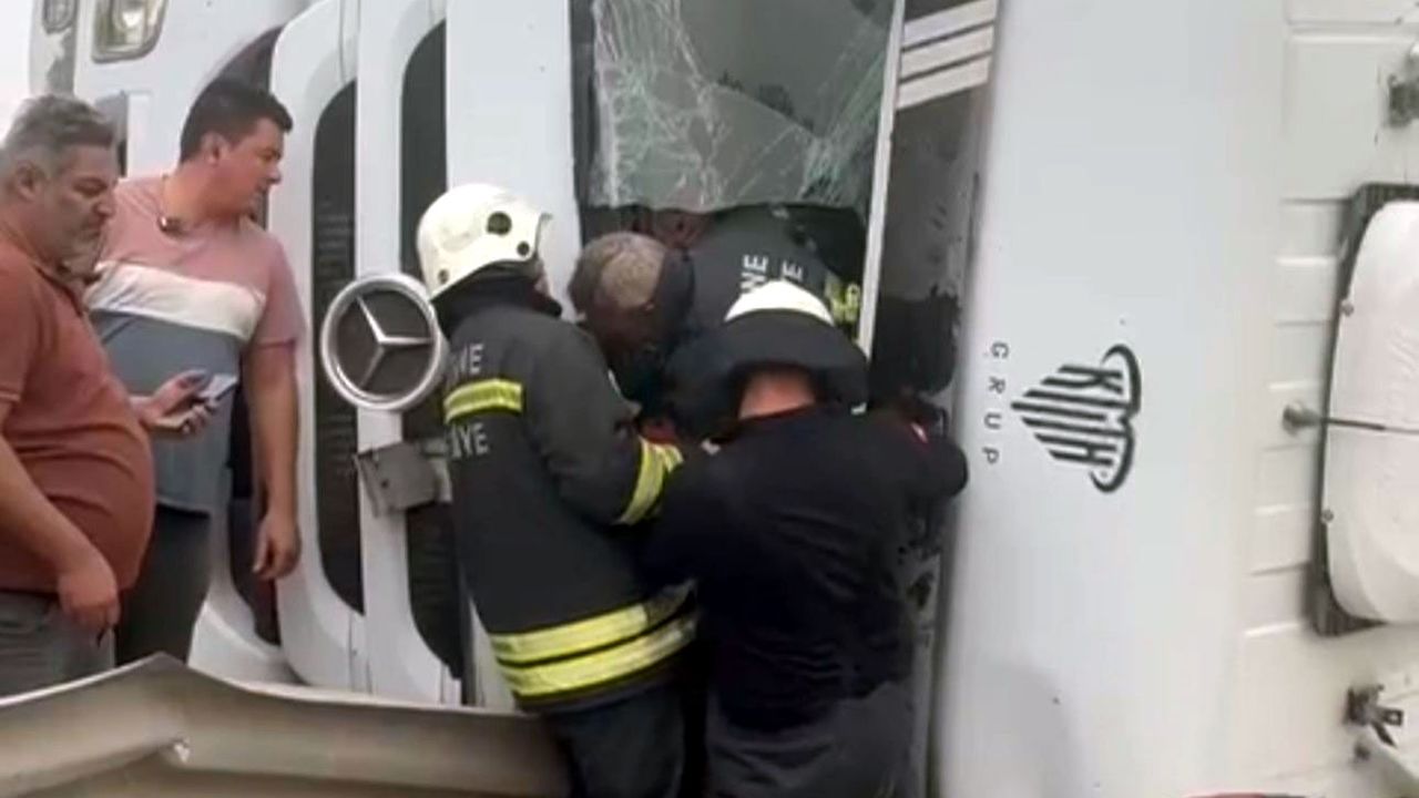 Kaza, Edirne-Havsa ilçesi arasındaki D-100 kara yolunda meydana geldi. M.D.'nin kontrolünü yitirdiği 42 AJB 033 plakalı kum yüklü hafriyat kamyonu, refüj bariyerine çarparak devrildi. Kazada sürücü araçta sıkıştı. İhbar üzerine kaza yerine jandarma, sağlık ve itfaiye ekipleri sevk edildi. Yaralı sürücü, ekiplerin çalışmasıyla çıkarılıp, Trakya Üniversitesi Tıp Fakültesi Hastanesi'ne kaldırıldı.