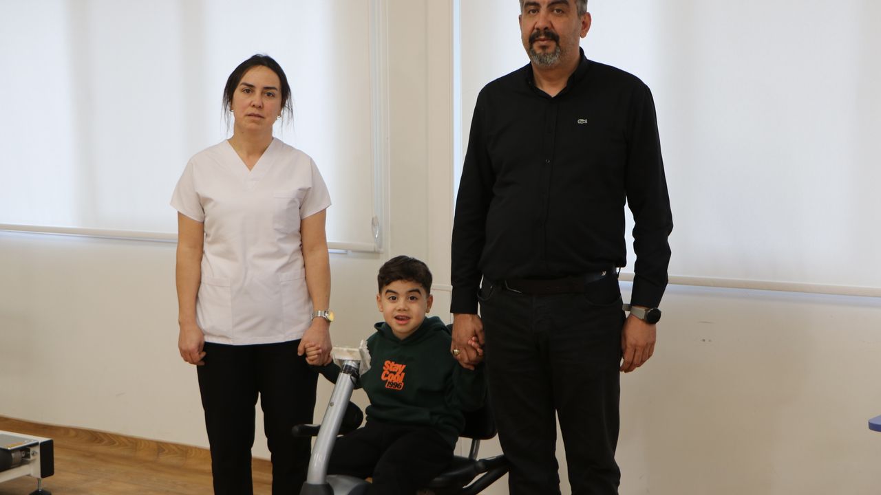 Sağlık memuru anne Aydan Tepe ise hayırseverlerden destek isteyerek 'Oğlumuzun okul bahçesinde yaşıtlarıyla sağlıklı adımlarla koşup oynamasını istiyoruz' dedi. (DHA)