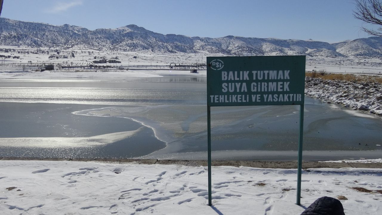 Remziye ÖNER/GERCÜŞ (Batman), (DHA)- BATMAN'ın Gercüş ilçesinde Kırkat Göleti'nin yüzeyi kısmi olarak buz tuttu. Bazı vatandaşlar, buz tabakalarının üzerinde hatıra fotoğrafı çektirdi.