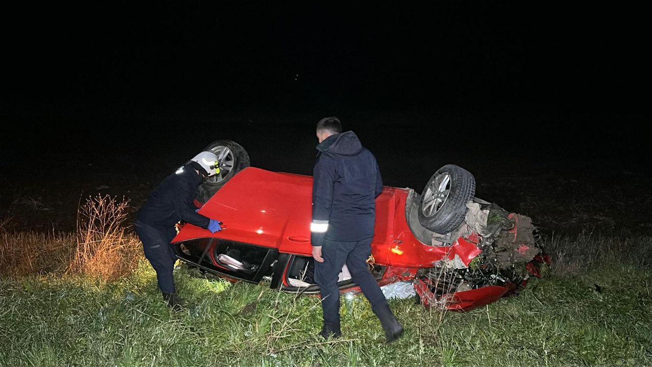 Umut IŞIK/ EDİRNE, (DHA)- EDİRNE'de sürücüsünün kontrolünden çıkıp takla atarak devrildiği tarlada ters dönen otomobilde 1'i ağır 2 kişi yaralandı.
