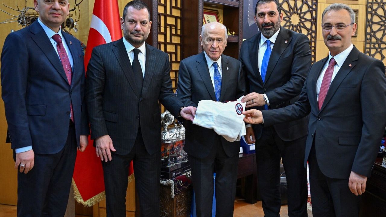 Trabzonspor Başkanı Ertuğrul Doğan ile Asbaşkan Zeyyat Kafkas, Milliyetçi Hareket Partisi Genel Başkanı Devlet Bahçeli'yi makamında ziyaret etti. Gerçekleşen görüşmede Şalpazarı Belediye Başkanı Refik Kurukız da yer alırken, ziyaret sırasında kulübün tarihine atıf yapan özel hediyeler takdim edildi. Ziyarette, Trabzonspor'un 1975-1976 sezonunu simgeleyen retro beyaz forması ile özel işlemeli bir kılıç Devlet Bahçeli'ye hediye edildi. Kulübün tarihindeki önemli dönüm noktalarından biri olan şampiyonluk sezonuna gönderme yapılan hediyeler, görüşmenin öne çıkan detayları arasında yer aldı. Trabzonspor Kulübü Başkanı Ertuğrul Doğan, misafirperverlikleri dolayısıyla teşekkürlerini iletirken, Milliyetçi Hareket Partisi (MHP) Genel Başkanı Devlet Bahçeli de nazik ziyaret için memnuniyetini ifade ederek Trabzonspor'a başarı dileklerinde bulundu.