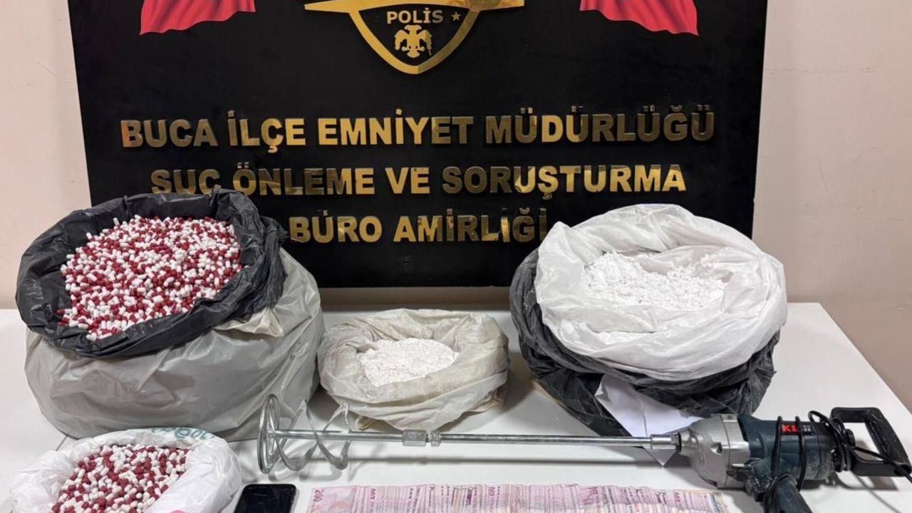 Buca Emniyet Müdürlüğü ekipleri, 'Uyuşturucu madde imalat ve satışı yapan' kişilere yönelik dün operasyon düzenledi. Yeşilbağlar Mahallesi'ndeki evinde 10 kilo sentetik hap tozu ve 28 bin doldurulmaya hazır boş kapsül ele geçirilen M.A.K., gözaltına alındı. Şüphelinin polisteki işlemlerinin sürdüğü bildirildi. (DHA)