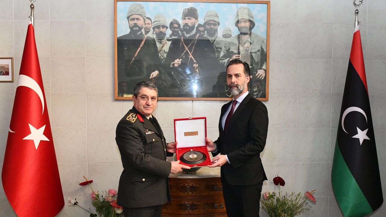 LİBYA, (DHA) - GENELKURMAY Başkanı Orgeneral Selçuk Bayraktaroğlu, Libya Genelkurmay Başkanı Muhammed Ali Al-Haddad ve beraberindeki askeri heyet için düzenlenen törene katılmak üzere gittiği Libya'da, Libya Görev Grubu Komutanlığı'nda incelemelerde bulundu.