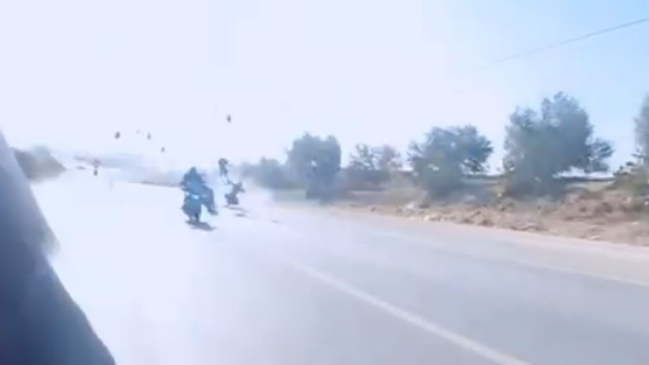 Ufuk AKTUĞ/TARSUS (Mersin), (DHA)- MERSİN'in Tarsus ilçesinde motosiklet grubuyla konvoy halinde geziden dönerken otomobille çarpışan motosikletin sürücüsü Hikmet Gürarslan (53) hayatını kaybetti, beraberindeki Tolga Cugun (27) ağır yaralandı. Kaza, güvenlik kamerasına yansıdı.