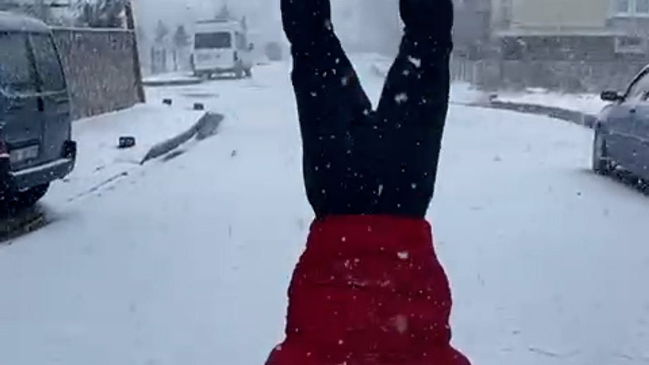 Sabah saatlerinden itibaren ilçeyi beyaza bürüyen kar yağışı, vatandaşları sokağa dökerken, geri takla alanında Guinness Rekorlar Kitabı'na giren Terme Judo Kulübü Antrenörü Osman Ismak da karla kapanan yolda art arda 20 geri takla atarak, kar sevincine ortak oldu. Gösteriyi izleyen vatandaşlar o anları cep telefonlarıyla kaydetti. (DHA)