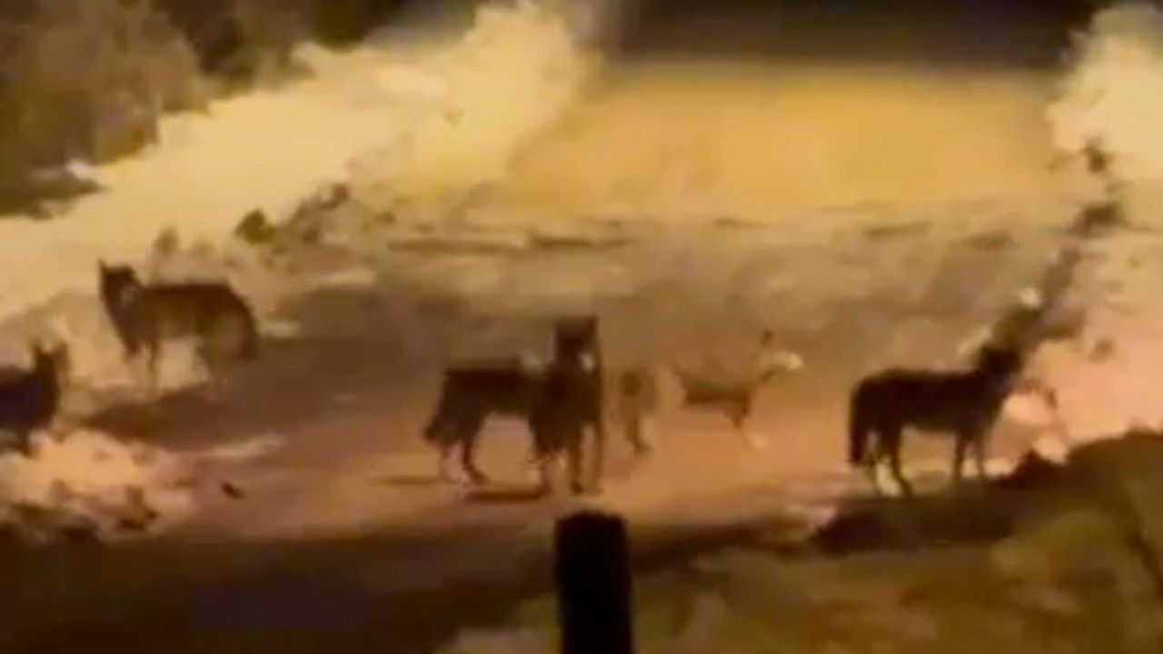 Dinçer AKTEMUR/ARDAHAN, (DHA)- ARDAHAN'ın Posof ilçesinde gece saatlerinde ilçe merkezine inen kurt sürüsü, cep telefonu kamerasıyla görüntülendi.