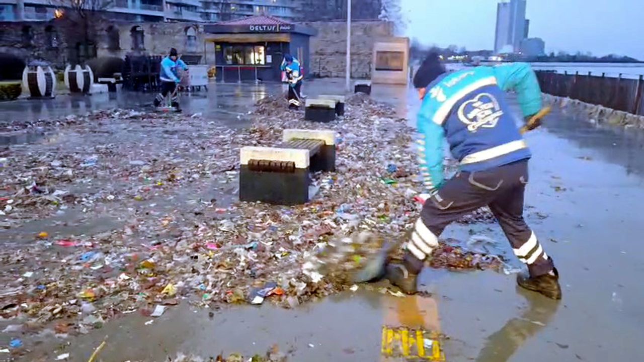 İstanbul geneşlinde etkili olan lodos denizdeki atıkların sahile taşınmasına neden oldu. Ataköy 2., 5. ve 6'ncı Kısım'da bulunan Millet Parkı sahil kesimindeki dalgalar, gece boyu kayalıkları aştı. Dalgalar denizdeki midye kabuğu, yosun ve diğer atıkları sahile taşıdı. İstanbul Büyükşehir Belediyesi (İBB) ekipleri İSE, sabah saatlerinde sahil kesimini dolduran atıkları belirli noktalara kadar taşıdıktan sonra sahilden temizledi. (DHA)