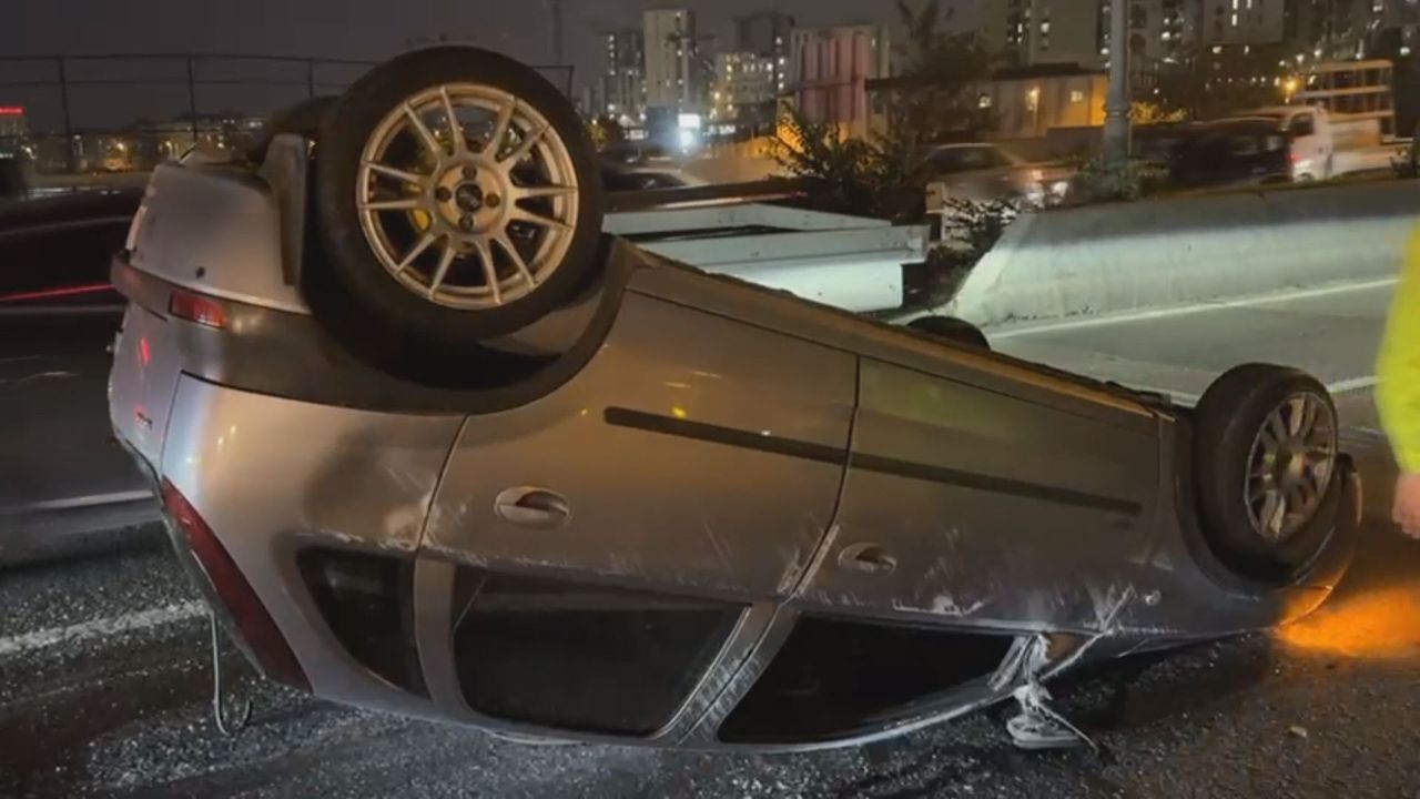 Kaza, saat 19.00 sıralarında O-3 Otoyolu Bayrampaşa mevkiinde meydana geldi. İddiaya göre, Topkapı istikametine doğru makas atarak ilerleyen Baran D.'nin kullandığı 34 BK 5286 plakalı otomobil kontrolden çıkarak Sağmalcılar Viyadüğü üzerinde İsa G. yönetimindeki 34 FSS 87 plakalı cipe çarptı. Çarpmanın etkisiyle savrularak takla atan araç, ardından Hasan D.'nin kullandığı 59 EC 602 plakalı başka bir otomobile çarparak durdu. Kazada ölen ya da yaralanan olmazken 3 araçta da maddi hasar meydana geldi. Kaza nedeniyle durma noktasına gelen trafik, araçların çekici yardımıyla kaldırılmasının ardından normale döndü. Polis, kazayla ilgili inceleme başlattı. (DHA)