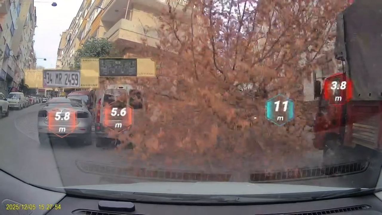 Olay, 5 Aralık saat 15.25 sıralarında Esenler'de meydana geldi. Edinilen bilgiye göre; ters yönden gelen kamyonetin şoförü karşı yönden gelen araçlara yol vermek için kaldırıma yanaştı. Bu sırada kamyonetin kasasının çarptığı ağaç yerinden sökülerek devrildi. Yaralanan kimsenin olmadığı kaza bir otomobilin içerisindeki araç içi kameraya yansıdı. (DHA)