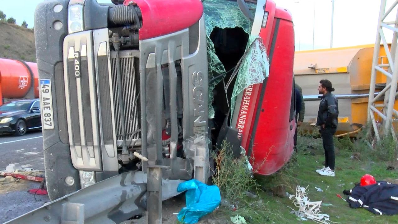 Kaza saat 15.30 sıralarında Eyüpsultan Kuzey Marmara Otoyolu Başakşehir istikametinde meydana geldi. 49 AAE 837 plakalı kum yüklü hafriyat kamyonunun sağ ön lastiği seyir halindeyken patladı. Lastiğin patlamasıyla kontrolden çıkan kamyon yan yatarak bariyerlere çarptı. Çevredekilerin ihbarı üzerine adrese itfaiye, acil sağlık ve polis ekipleri geldi. Sağlık ekiplerinin kontrollerinde kazada yaralandığı belirlenen kamyon şoförü olay yerindeki ilk müdahalenin ardından ambulansla hastaneye kaldırıldı. Kazada kamyondan dökülen kumlar sebebiyle Başakşehir istikametinde trafik yoğunluğu oluştu. Kamyonun çekici yardımıyla kaldırılmasının ardından trafik akışı normale döndü. (DHA)