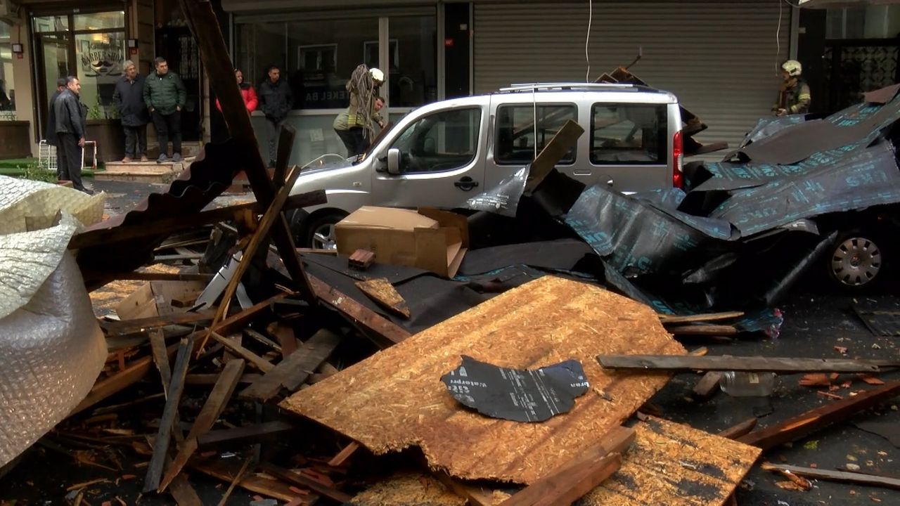 Şişli'de ise bir binanın çatısından kopan parçalar park halindeki 3 aracın üzerine düştü. O sırada caddeden kimsenin geçmemesi olası bir facianın önüne geçti. İhbar üzerine olay yerine itfaiye ve polis ekibi sevk edildi. Çatıdan kopan parçalar itfaiye merdiveniyle alınırken, parçaların zarar verdiği 3 araçta hasar oluştu.Çatının uçma anı ise bir iş yerinin güvenlik kamerası tarafından kaydedildi. Görüntülerde çatıdan kopan parçaların araçların üzerine düştüğü anlar görülüyor.Aracı hasar gören Sinan Taylan 'Ben hastanedeydim. Geldim aracımı bu vaziyette gördüm. Allah'tan can kaybımız yok. Gelecek olan mala gelecek, yapacak birşey yok. Hastanedeyken aradılar. 'Gel aracının üzerine çatı uçtu' dediler. Geldim bu vaziyette gördüm aracımı. Can kaybı yok; araçlarda ve çatılarda zarar var. Çok rüzgar vardı. İstanbul'da çok sayıda çatı uçmuş sanırım' dedi.