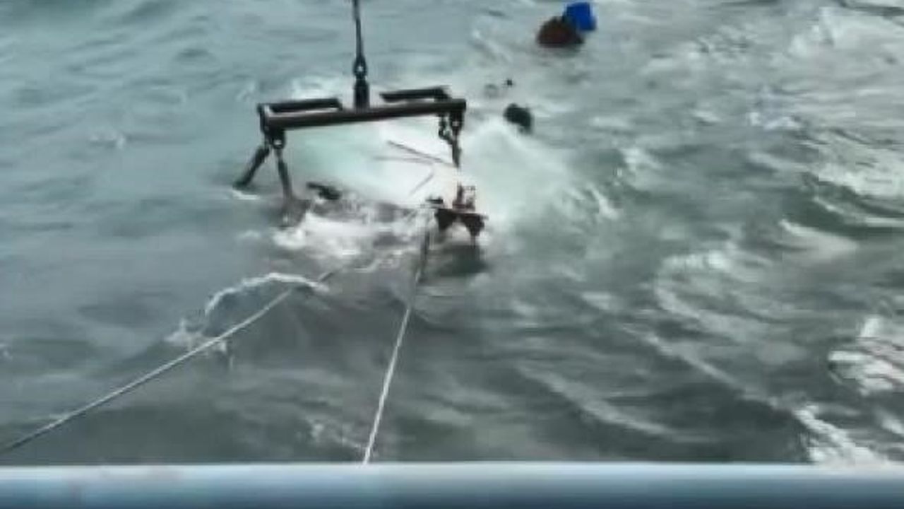 İstanbul'da kent genelinde etkili olan şiddetli lodos hava ve deniz ulaşımını olumsuz etkilemeye devam ediyor. Sarıyer Büyükdere sahilinde bir balıkçı teknesi lodos nedeniyle battı. Tekne vinç yardımıyla denizden çıkarıldı. Tekneyi kurtarma çalışmaları cep telefonu kamerasına yansıdı. (DHA)