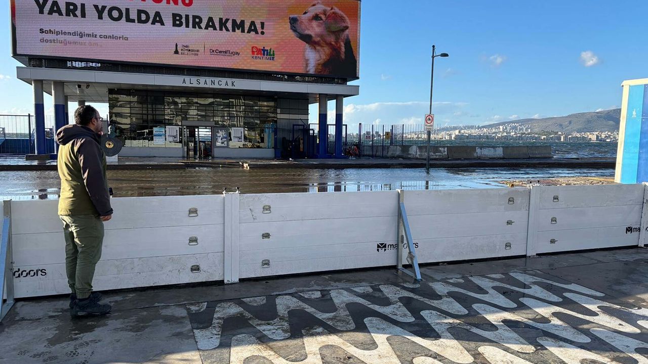 İzmir'de sağanak ve kuvvetini artıran rüzgar, kent genelinde etkisini sürdürüyor. Kuvvetli rüzgar nedeniyle kentin en yoğun yerlerinden olan Konak ilçesindeki Alsancak kordon boyunda deniz taştı. Taşan su, kaldırımla birleşti. Rüzgar sebebiyle deniz ulaşımının yapılamadığı kentte, Alsancak Limanı'nın çevresi sularla doldu. İzmir Büyükşehir Belediyesi tarafından inşa edilen geçici fırtına duvarı sayesinde taşan deniz suları hem çim alana hem de iş yerlerine ulaşamazken, herhangi bir baskın yaşanmadı. (DHA)