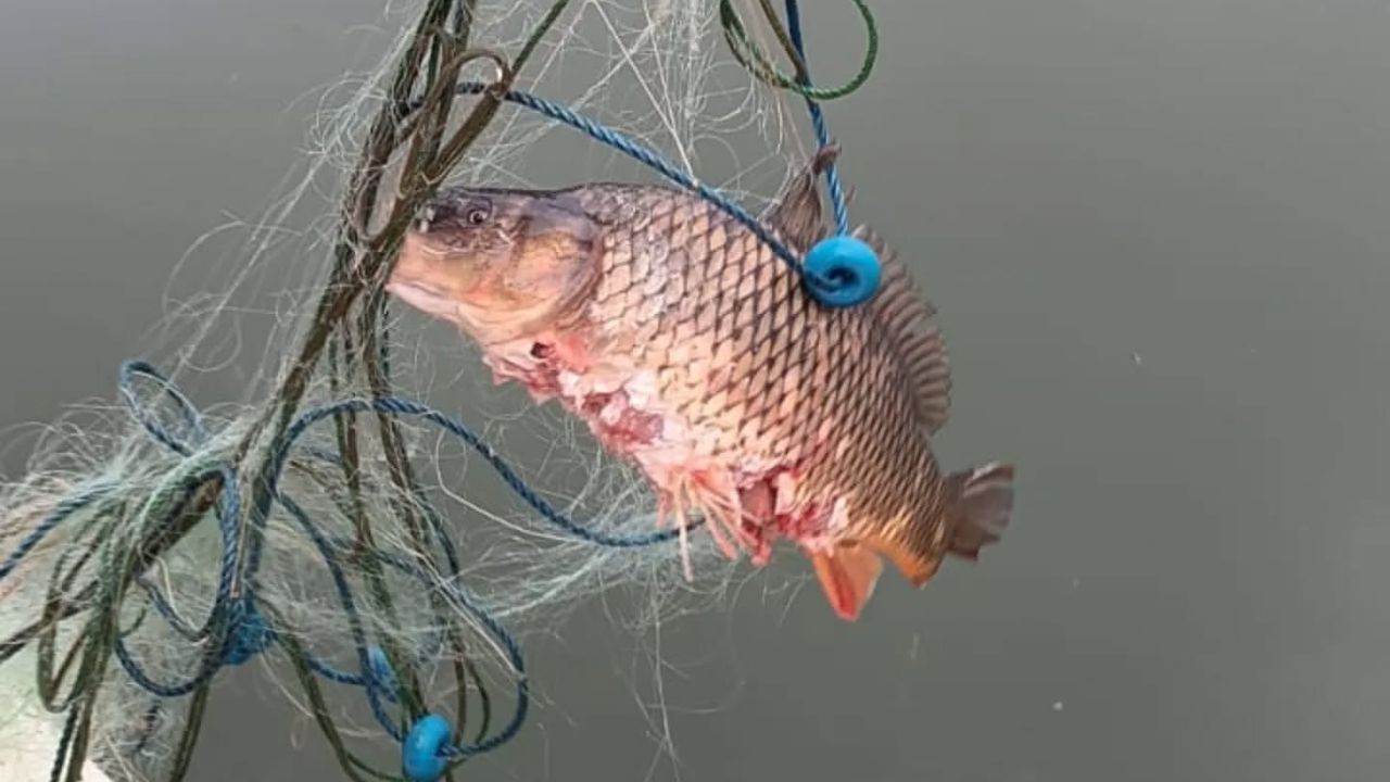 Oğuzhan EKE/ SEBEN(Bolu), (DHA)- BOLU'nun Taşlıyayla Göleti'nde yapılan denetimde 500 metre kaçak ağ yakalandı. Ağa takılan 105 sazan balığı, canlı olarak kurtarıldı.