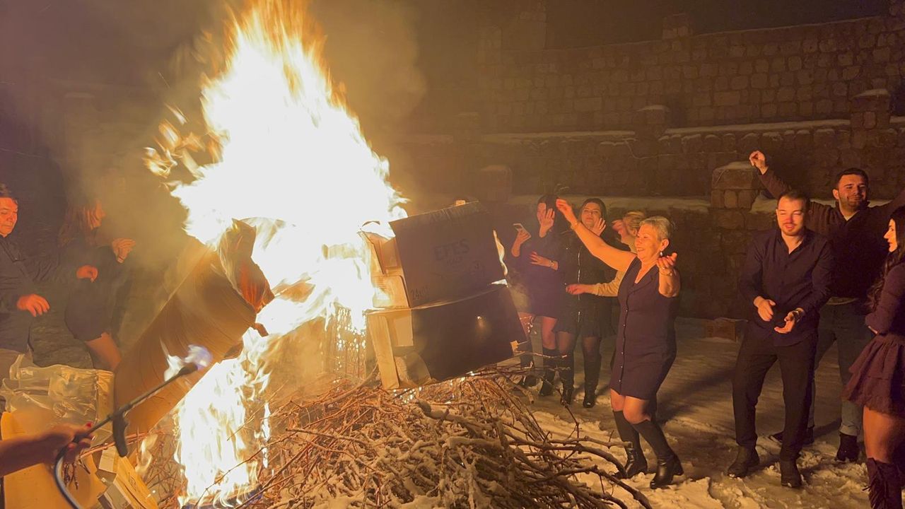 Kapadokya bölgesinde yerli ve yabancı turistlerin yılbaşı kutlamaları pek çok noktaya akın etti. Kapadokya'da en fazla ilgi gösterilen mekanlar, volkanik tüfler içerisine oyularak yapılan yeraltı eğlence merkezleri oldu. Bölgeye gelen yerli ve yabancı turistler, 2026 yılını eğlence merkezlerinde karşıladı. Turistler, havai fişek ve dansöz gösterileriyle eğlendi. (DHA)