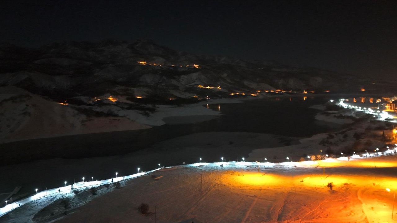 Gece saatlerinde ise baraj gölü çevresindeki sokaklar ve konutlardan yansıyan ışıklar, karın beyazlığıyla bütünleşerek farklı bir atmosfer oluşturdu. Kentte oluşan sessizlik ve ışıkların kar üzerindeki yansımaları, izleyenlere güzel bir manzara sundu. Kar yağışının etkili olduğu kentte gece ve gündüz ortaya çıkan manzara dron ile görüntülendi. (DHA)