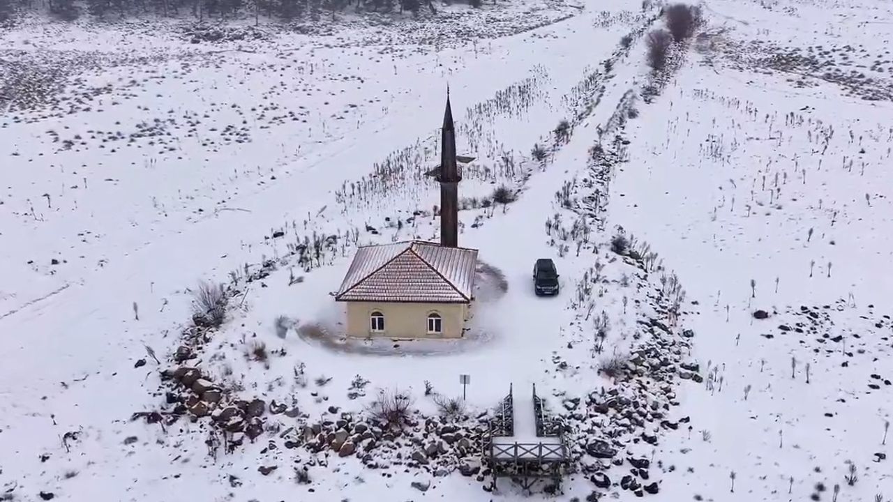 Bolu'nun yüksek kesimlerinde etkili olan yağışın ardından kar kalınlığı yaklaşık 50 santime ulaştı. Aladağ bölgesinde yer alan yaylalar, karla kaplandı. Bölgede geniş meralar ile yeşil alanlara sahip Sarıalan Yaylası'nda, karların içerisinden geçen mendereslerin yarattığı eşsiz manzara dron ile görüntülendi. Yol boyunca sıralanan çam ormanları da beyaz örtüyle kaplandı. Bölgede bulunan Sarıalan Göleti de buz tuttu. (DHA)