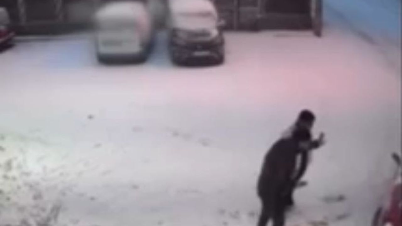 Kentte 2 gün boyunca etkili olan kar yağışı nedeniyle sürücüler, trafikte zor anlar yaşarken, Yıldırım ilçesinde buz tutan yolda sürücüsünün direksiyon hakimiyetini kaybetmesiyle kayan bir otomobili, o sırada sokakta olan 2 arkadaş elleriyle tutup, geri ittirdi. O anlar, bir iş yerinin güvenlik kamerasıyla görüntülenirken; 2 arkadaş, kaza yapmaktan kurtardıkları otomobilin sürücüsüne el salladı. (DHA)