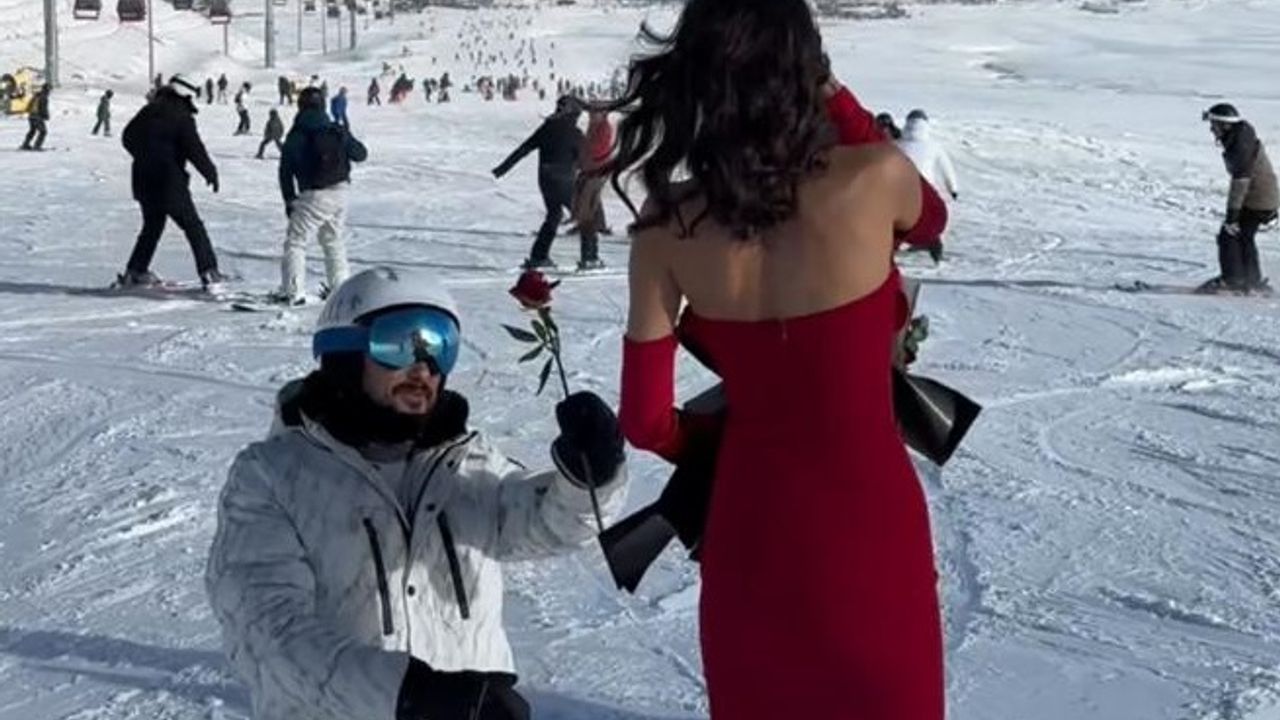 Erciyes Üniversitesi Spor Bilimleri Fakültesi öğrencisi Ayşegül Soylar, kırmızı elbisesi ve kayak takımlarını giyerek Erciyes Kayak Merkezi'ne geldi. Tekir Kapı pistinden, elbisesiyle pistte kayarak aşağı inen Soylar, elindeki gülleri vatandaşlara hediye etti. Soylar'ın davranışı, vatandaşlar tarafından ilgiyle karşılandı. O anlar cep telefonu kamerasıyla kaydedildi. Görüntülerde Soylar'ın hem kayarken hem de vatandaşlara gül hediye ettiği görüldü. (DHA)