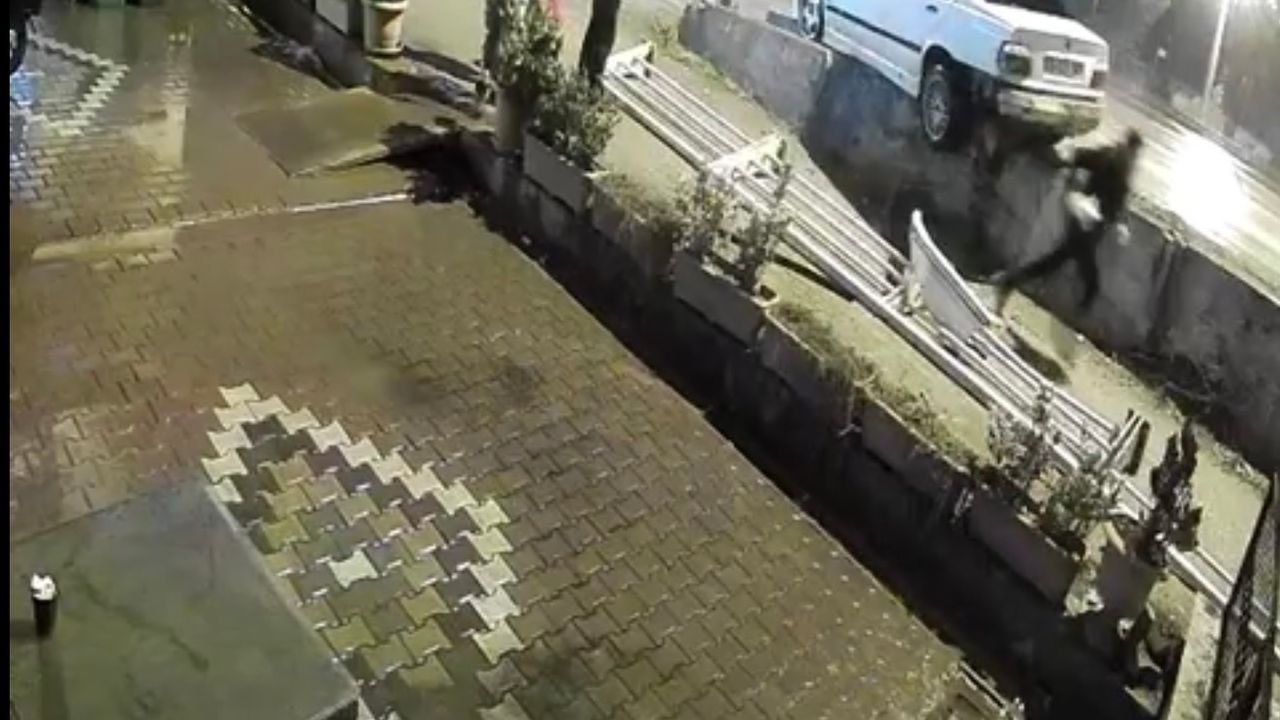 Olay, dün akşam saatlerinde Şehit Ateşe Reşat Bulvarı'nda meydana geldi. Sürücüsünün kontrolünü kaybettiği, plakası öğrenilemeyen otomobil, yol kenarındaki korkuluklara çarptı. Çarpmanın etkisiyle korkuluk kırıldı, otomobil ise askıda kaldı. Kazanın ardından sürücü, koşarak bölgeden uzaklaştı. Bu anlar çevredeki bir iş yerinin güvenlik kamerasına yansıdı.