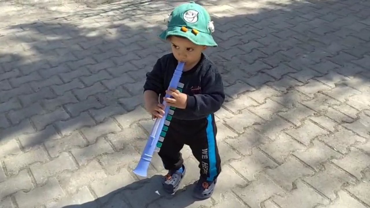 Köyde yaşayan 5 ve 3 yaşlarındaki 3 çocuk, ellerine aldıkları oyuncak flütler ve yağ kutusundan yaptıkları darbuka ile sokaklarda dolaşarak vakit geçirdi. Kendi yaptıkları basit enstrümanlarla müzik çalan çocukların neşeli halleri, çevredeki vatandaşların ilgisini çekti.