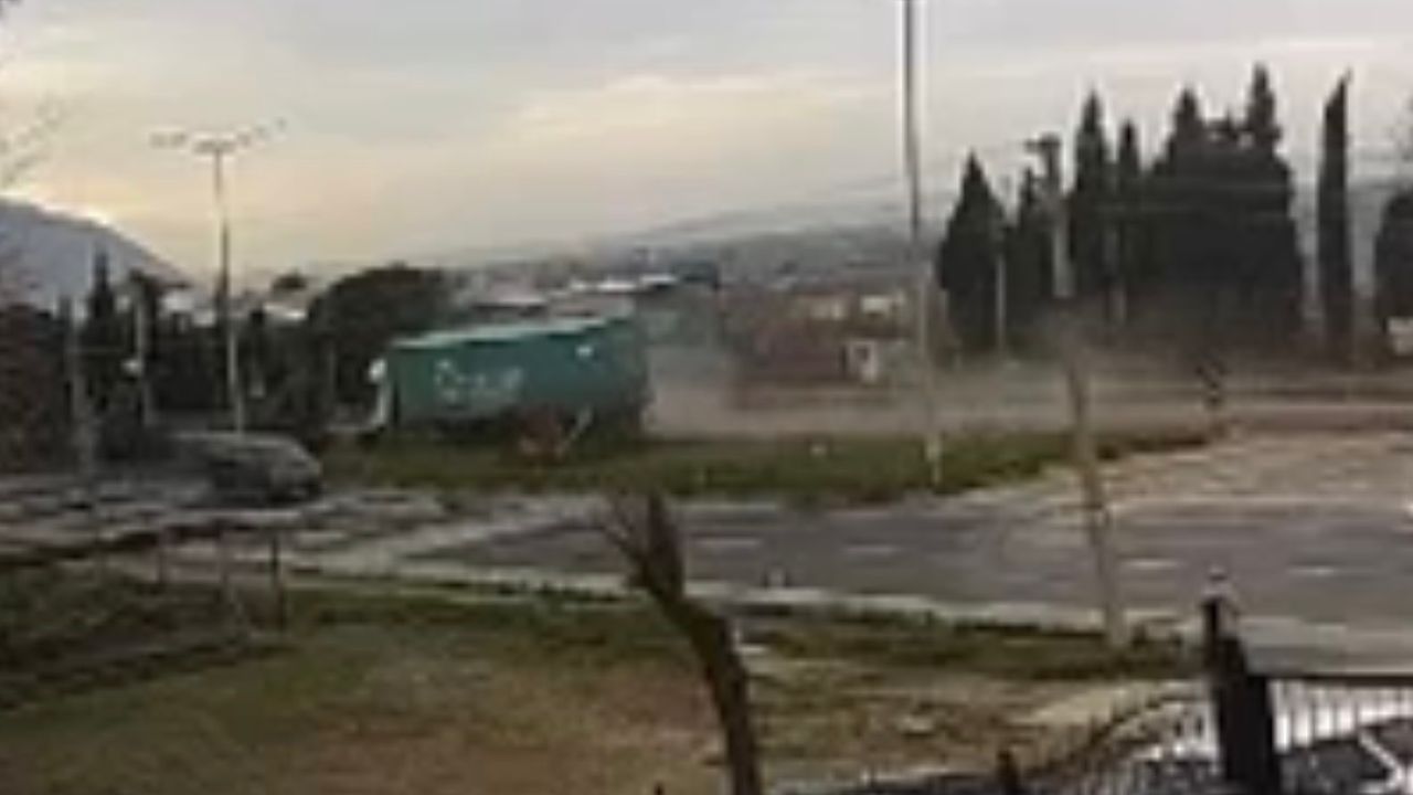 Manisa'nın Turgutlu ilçesinde TIR ile çarpışan otomobilin sürücüsü Halil İnan'ın (63) hayatını kaybettiği kaza, bir iş yerinin güvenlik kamerasına yansıdı. Güvenlik kamera kaydında TIR ile otomobilin kavşakta çarpıştığı anlar yer aldı. (DHA)