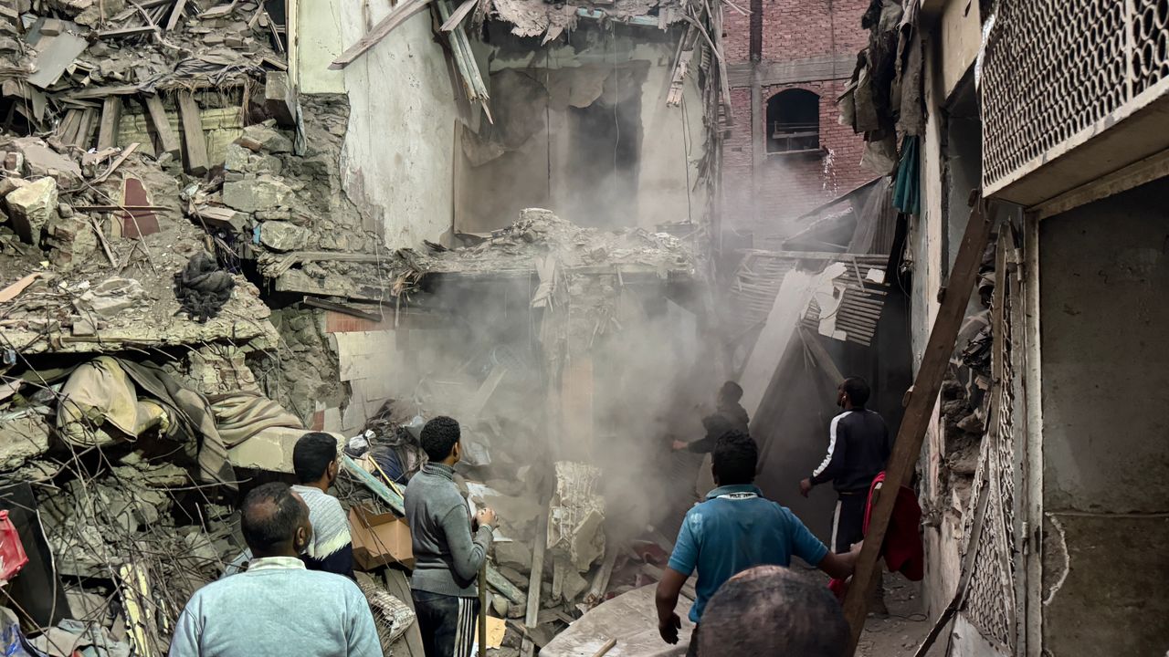 - Giza kentinde 5 katlı bir binanın çöktüğü alandan görüntüler.