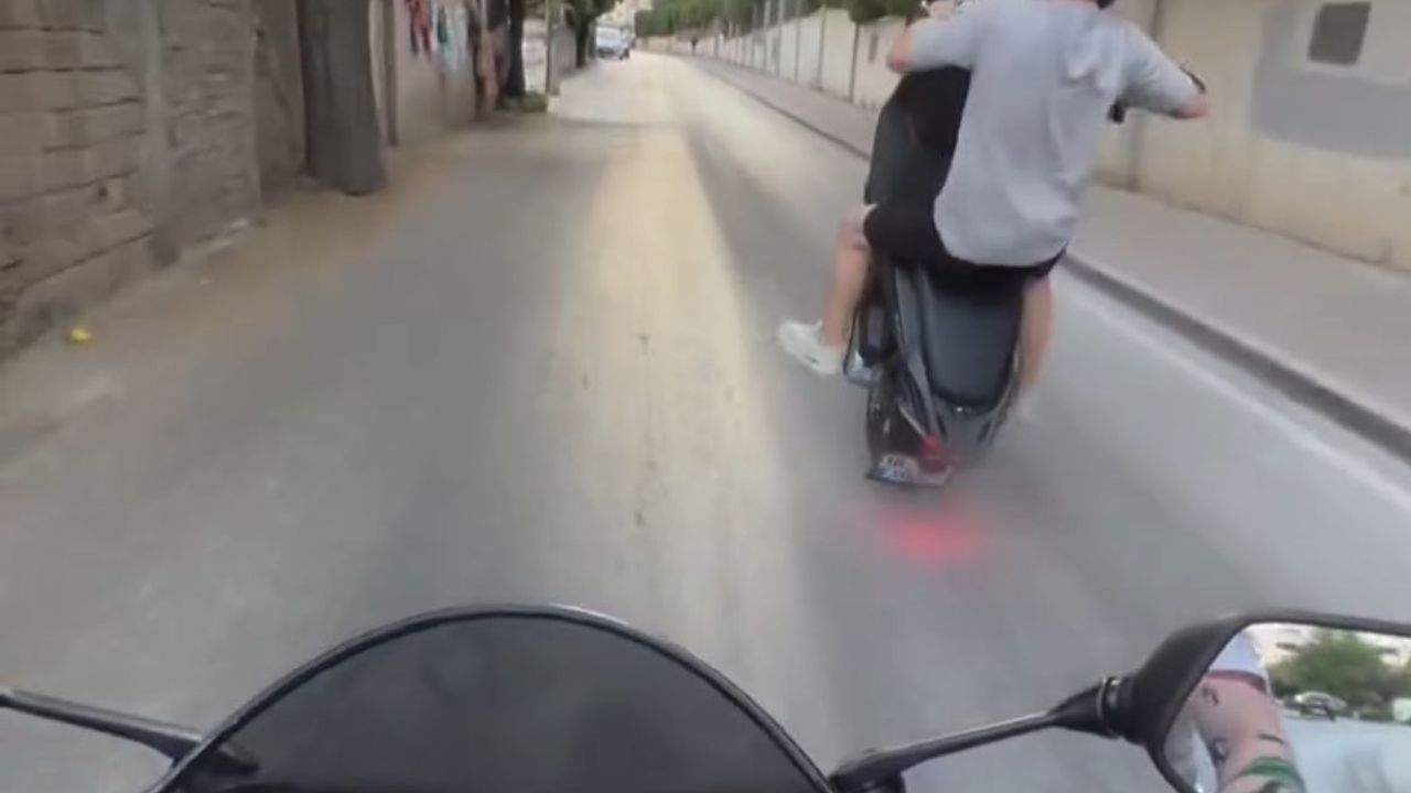Nilüfer ilçesinde seyir halinde olan bir sürücü, motosikletinin ön tekerini kaldırıp, tek teker üzerinde ilerlemeye çalıştığı sırada, dengesini kaybedip düştü. Motosiklet de havada takla atıp düşerken, o anlar başka bir motosiklet sürücüsünün kask kamerasına yansıdı. (DHA)
