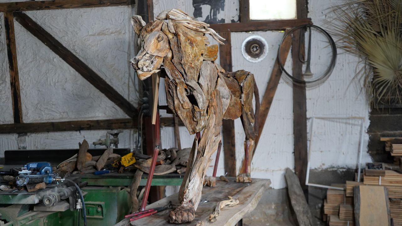 Antalya'da yaklaşık 13 yıldır marangozluk yapan Osman Dönmez, son 1 yıldır driftwood sanatıyla ilgilenmeye başladı. Doğada rüzgar, yağmur ve fırtınadan etkilenen ağaç parçalarını toplayarak yeniden bir araya getiren Dönmez, bu parçalarla hayvan figürleri yapıyor. Dönmez, Manavgat'ta temmuz ayında hayvanat bahçesinden kaçan aslan Zeus'un öldürülmesinden etkilenerek, hikayesini heykelle yaşatmaya karar verdi. Osman Dönmez, doğadan topladığı ağaç parçalarını bu kez aslan Zeus için birleştirdi. Yaklaşık 1,5 metre yüksekliğindeki heykelle ilgili Dönmez, "Herkes gibi ben de bu olaydan çok etkilendim. Aslan Zeus'un öldürülme hikayesi içimde bir duygu uyandırdı. Onu sanatımla, duygularımla ve doğadan topladığım parçalarla yeniden yaşatmak, ölümsüzleştirmek istedim" dedi.