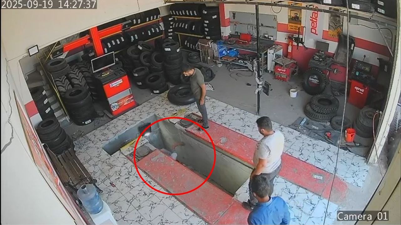 Olay, dün öğleden sonra, Mazıdağı ilçesindeki oto lastik dükkanında meydana geldi. İş yerinde çırak olarak çalışan H.G., su bidonu taşıdığı sırada dengesini kaybedip tamir çukuruna düştü. Çırağın yara almadığı olay, iş yerinin güvenlik kamerasına yansıdı.