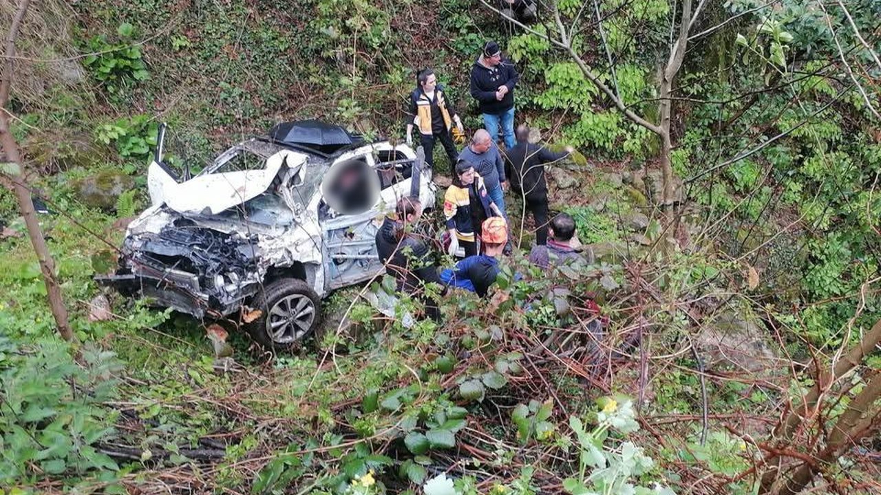 Ahmet BAYRAK / ORDU, (DHA) - ORDU'nun Kabadüz ilçesinde kontrolden çıkarak uçuruma yuvarlanan otomobildeki baba Kadem Şentürk (55) ve kızı Esra Şentürk (25) öldü, 1 kişi de ağır yaralandı.