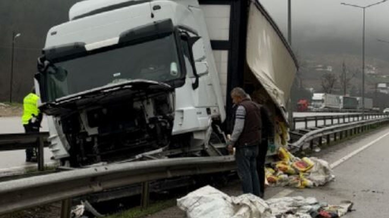 Emre ÖNCEL/SAMSUN, (DHA)- SAMSUN'un İlkadım ilçesinde park halindeyken bir anda hareket eden TIR, refüje çarptı.