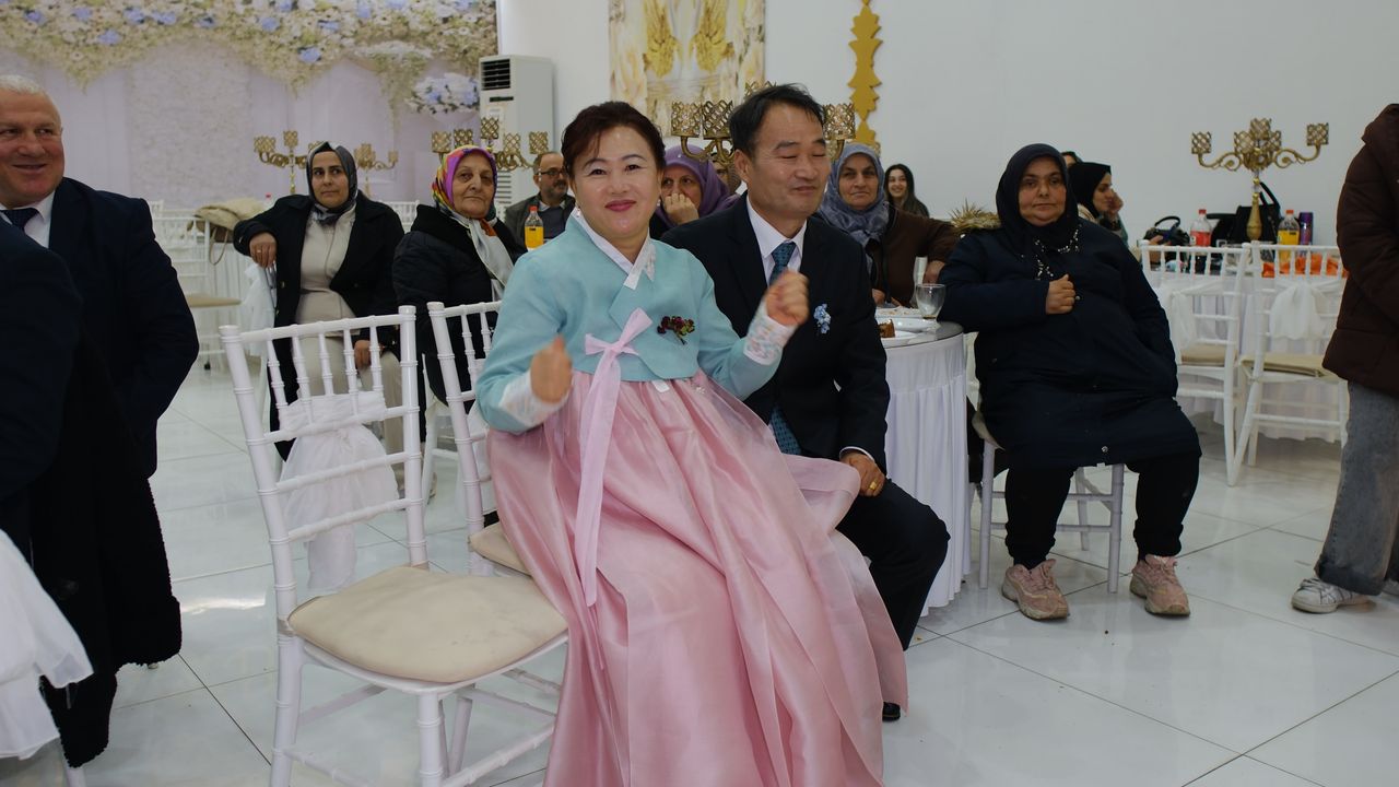 Davetli Selami Yelkenci ise 'Yabancı, eniştemiz Koreli. Biz de İstanbul'dan geldik. Sevdiler birbirlerini. Böyle hayırlısı oldu, verdik gitti. Kore'ye gidecek kızımız. Ne düşündük? İlk önce sıcak bakmadık tabii. Sonra tanıdık, ailesini tanıdık. İyi oldu, güzel oldu. Birbirlerini seviyorlar, mutlu olsunlar, huzurlu olsunlar. Sevdikten sonra hiç sıkıntı yok. Yeter ki sevsinler birbirini. Sevmek önemli. Allah mesut mutlu etsin' ifadelerini kullandı. (DHA)