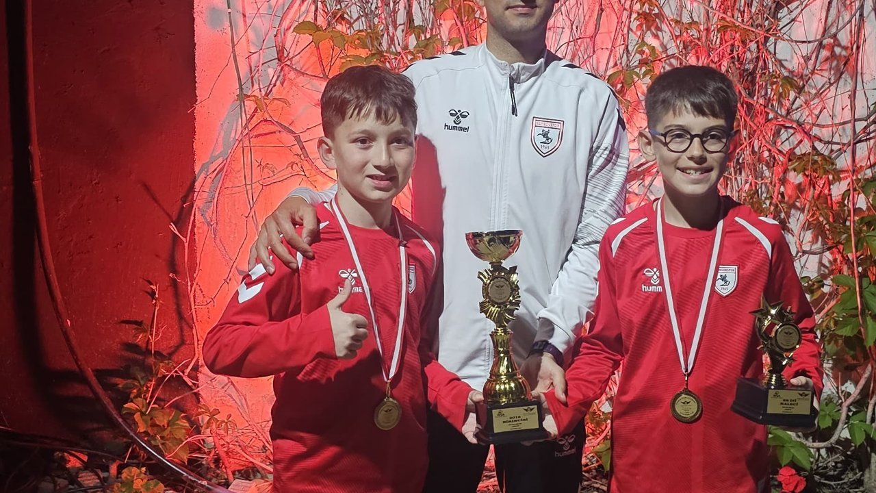 Turnuvada Samsunspor U10 takımı teknik sorumlusu Gürcan Çimen 'en değerli antrenör' seçilirken, kaleci Miralp Yağız Tanrıverdi ise 'en değerli kaleci' ödülüne layık görüldü. (DHA)