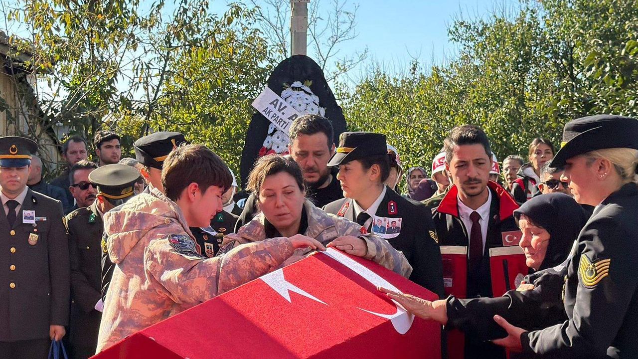 Mehmet YİRUN-Abdullah YALÇIN-Mehmetcan ARSLAN/TEKİRDAĞ, (DHA)- GÜRCİSTAN-Azerbaycan sınırında düşen askeri kargo uçağında şehit olan askerlerden Hava Uçak Bakım Astsubay Başçavuş İlker Aykut (39), memleketi Tekirdağ'ın Muratlı ilçesinde gözyaşlarıyla son yolculuğuna uğurlandı. Şehidin parkasını giyen eşi Duygu, oğlu Poyraz, Türk bayrağına sarılı tabuta sarılarak gözyaşı döktü.