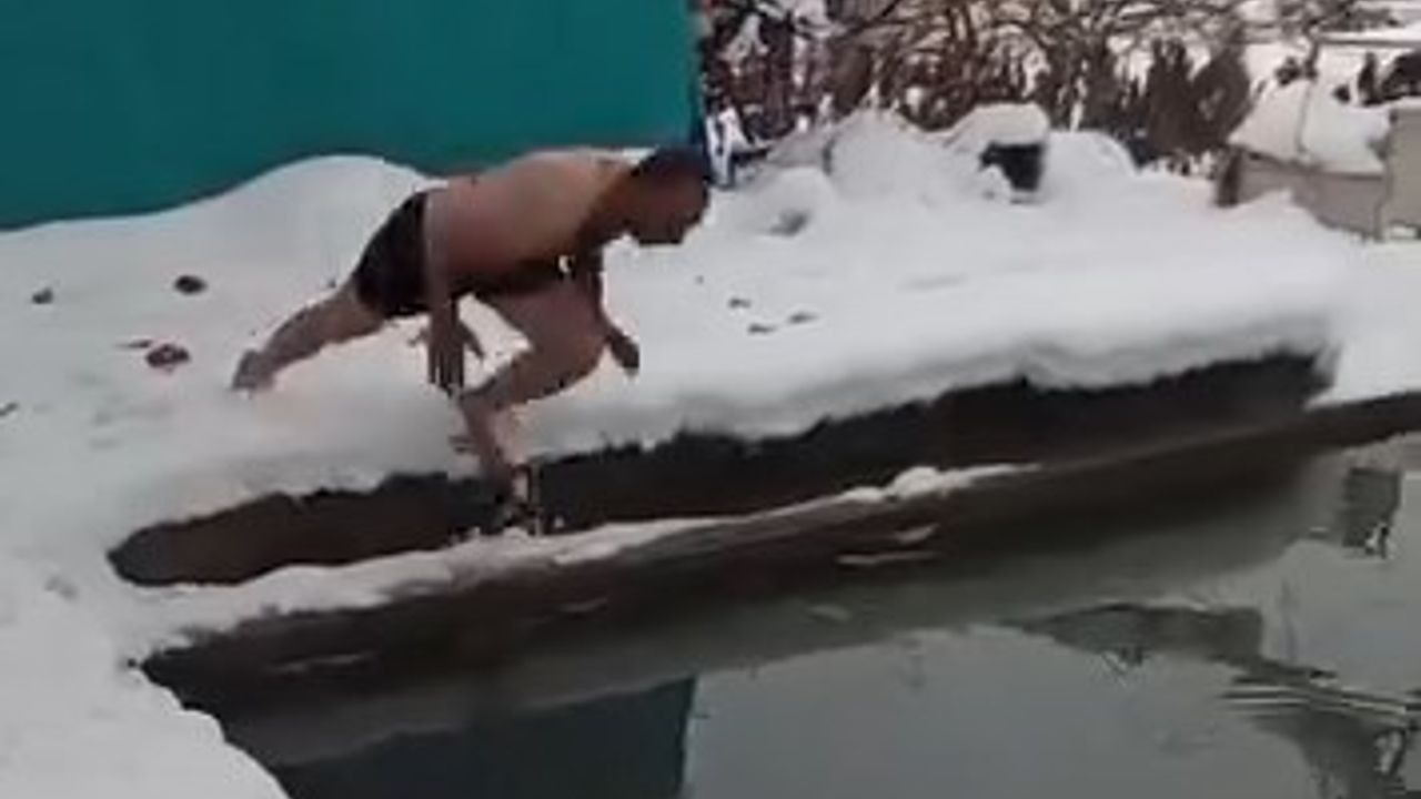 Akif ÖZALP/SİİRT, (DHA)- SİİRT'te Erhan Keklik, eksi 2 derecede fıstık bahçesindeki sulama havuzuna girdi. O anlar cep telefonu kamerasıyla kaydedildi.