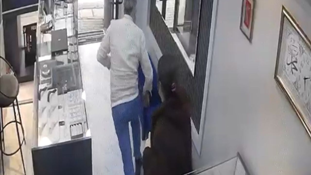 Yiğithan HÜYÜK/BURSA, (DHA)-BURSA'da kuyumcu S.A. (45), maske ile dükkanına girip, tabanca doğrultarak kendisinden altınları isteyen U.T.'yi (30), bağırıp azarladı. Panikleyen U.T. koşarak dükkandan kaçarken, soygun girişimi güvenlik kamerasına yansıdı.